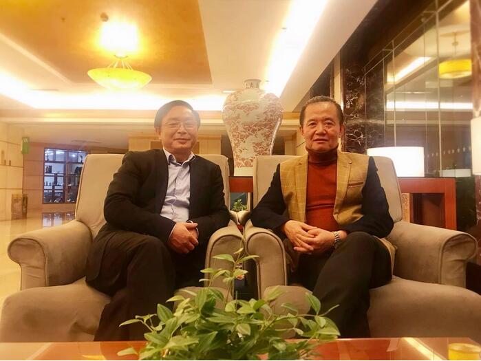 图二, 世界文化艺术导演艾文先生(右)与黔西南广播电视台公共频道执行总监温常山先生(左)在交谈