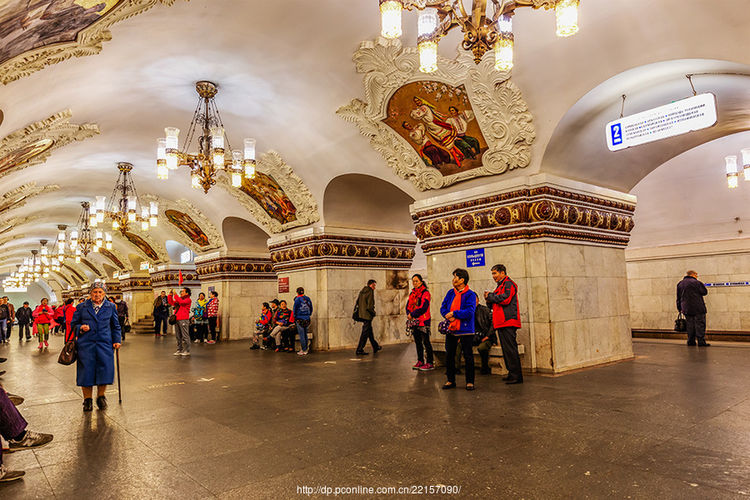 【莫斯科地铁站】:被公认为世界上最漂亮的地铁,是世界上规模最大的地铁系统之一,地铁站的建筑造型各异、华丽典雅。每个车站都有其独特风格,建筑格局也各不相同,多用五颜六色的大理石,花岗岩,陶瓷和五彩玻璃镶嵌除各种浮雕,雕刻和壁画装饰,照明灯具十分别致,好像富丽堂皇的宫殿,享有“地下的艺术殿堂”之美称。